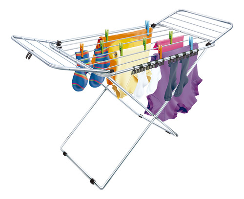 O Varal Chão Dobrável Alumínio Seca Aba Gigante da marca Secalux é a solução ideal para quem busca praticidade e eficiência na secagem de roupas. Com uma altura de 99 cm e um comprimento de 1,62 m, ele oferece amplo espaço para pendurar suas peças, garantindo que suas roupas sequem de forma rápida e uniforme.